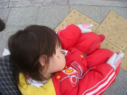 で、期待通り幼稚園に向かう途中で寝てくれました。