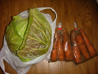 朝取りキャベツと泥付きにんじんを2袋購入。