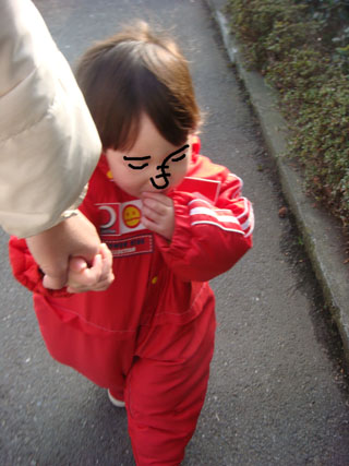 幼稚園に向かう時なんて、今日はバギーでしたがゲラゲラ笑っていたのに、この差は何でしょう?