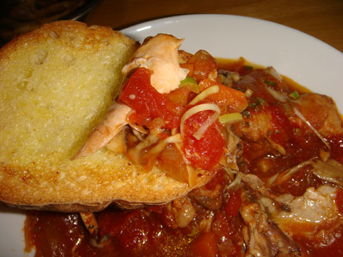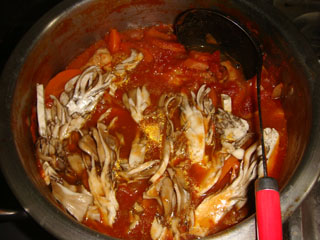 最初の年は(1997年)、骨付き鶏足のデカイのを、ホールトマトで煮込んだものと記憶しています。