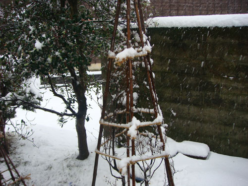 氷は、降ったみぞれが張り付いたものです。