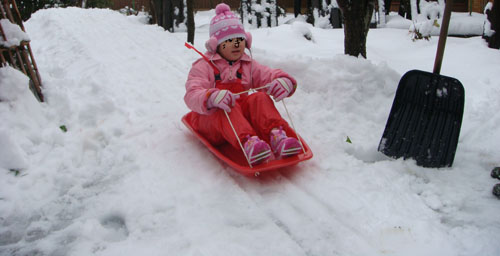 そり遊びと雪だるま