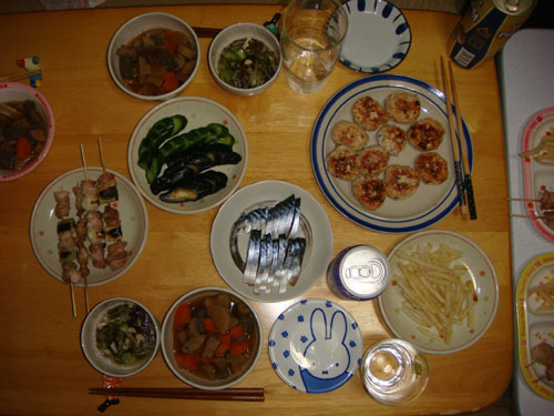 先にお風呂に入ってから料理を仕上げて、午後6時半から『居酒屋ごっこ』がスタートです。