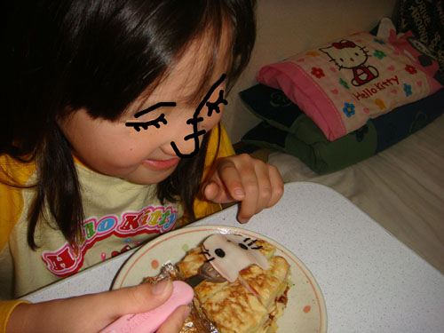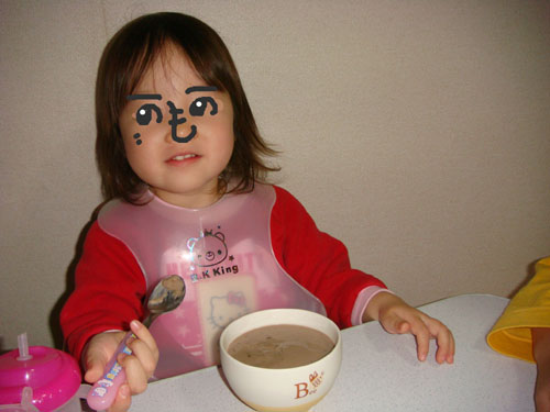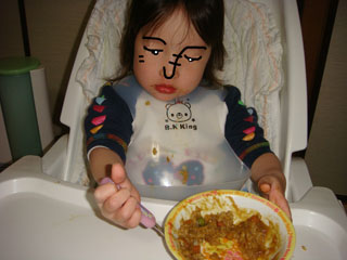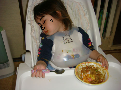 ちび子が、食べている最中に寝てしまいました。