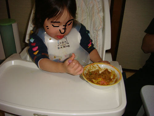 40分後、ちび子は目を開けると、まるで何事も無かったかのように夕食を続けました。