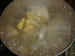まずは、ジャガイモの皮を剥いて、