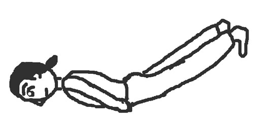 ←うつぶせになって顎を付けたまま(腕は体の下に)、