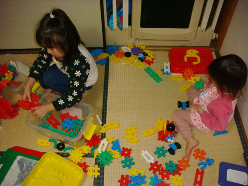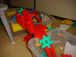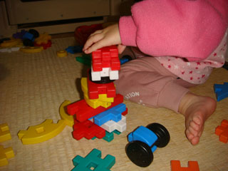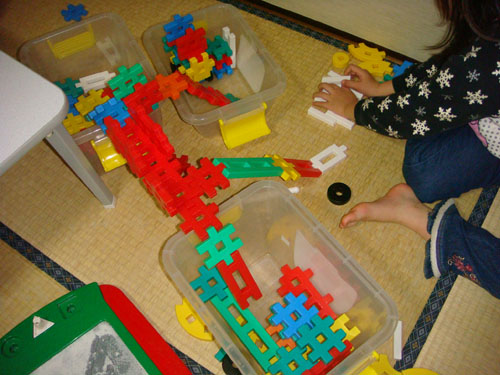 おやつの後は、子供たちはブロックを出して思い思いに遊んでいました。