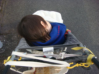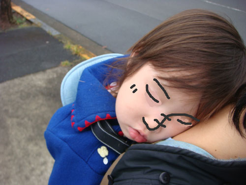 幼稚園へお迎えに行く途中、ちび子が寝てしまいました。