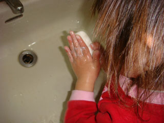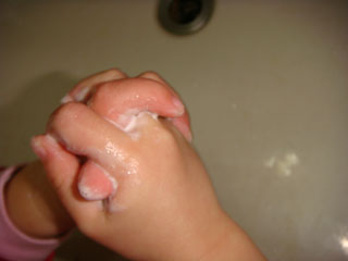 ってなわけで、ちび子をお風呂に入れている間に、風呂場で手洗い→脱水して干しました。