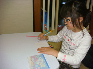 ちび子が眠っているので、邪魔されずに手紙が書けます。^^