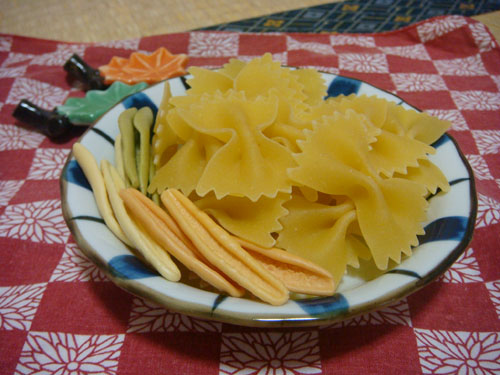 緑がきゅうり、青がナス、黄色は卵で、赤はマグロだそうな。