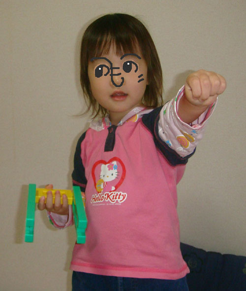 ちび子もゲキレンジャーになったつもりでポーズです。