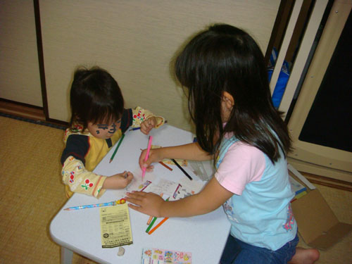 その間、子供達は2人でお絵かきしたり、