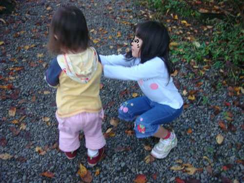 ちび子が寝てくれたので、降園後はぴよ子を園庭で思いっきり遊ばせることにして、