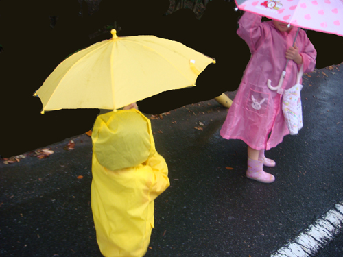 幼稚園から出てしばらくすると、細かい雨が降り出しました。