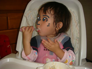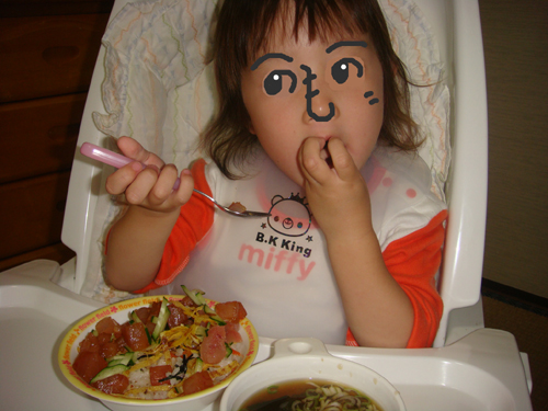 一旦家に帰って荷物を置いてから、ちび子をおんぶしたまま近所のスーパーに買物に行き、