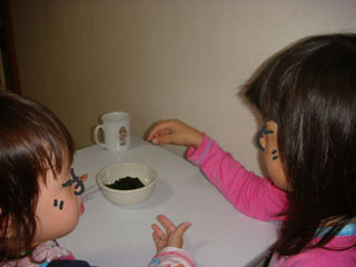 (おやつは各自持ち込み、その場にいる子供達で交換する。)