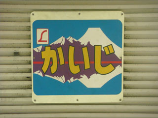 駅の改良工事に伴い、照明だった場所に穴が残り、それを塞ぐ為に看板を付けたそうな。