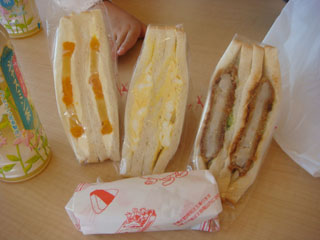 旦那は、たまごサンド1つ&カツサンド1つ。