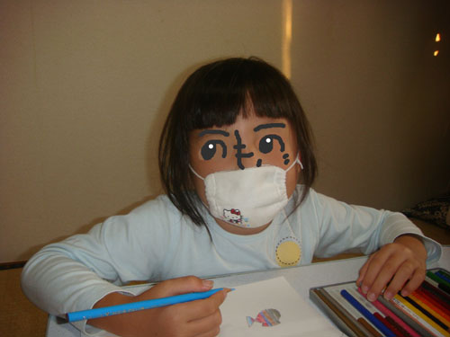 というわけで、今日はマスクをして幼稚園へ行きました。