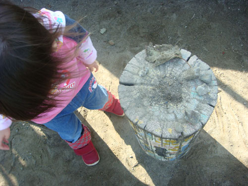 降園後、いつも通りぴよ子&ちび子は園庭で遊んで帰りました。