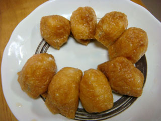 市販のいなり寿司の素(あげを味付けてあるもの。)を、