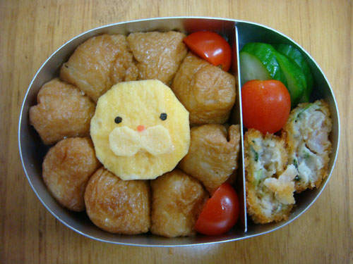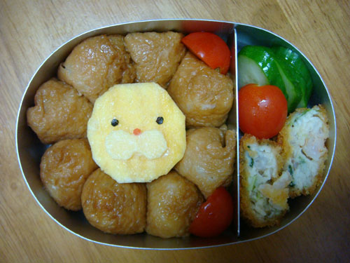顔の中心の黄色い部分は厚焼き卵。これを丸くカットしています。