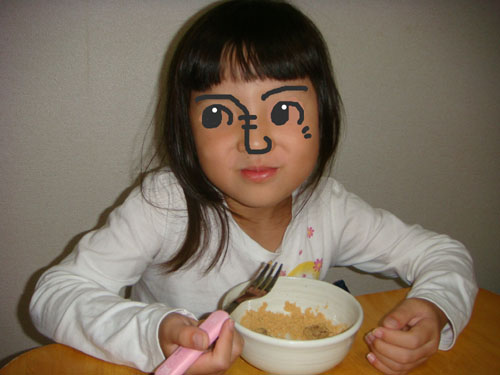 顔の真ん中の∞は、薄焼き卵。