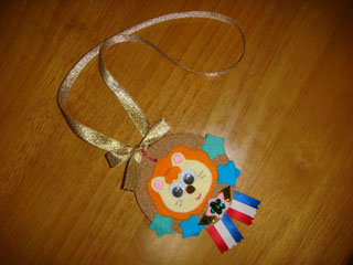 紙製のメダルと、おみやげをもらいました。