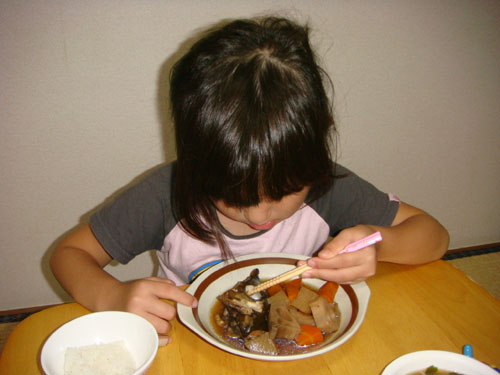 夕方4時くらいから、根菜と一緒にコトコト煮ています。