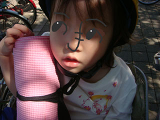 駐輪場に自転車を停めた後は、ちび子と手を繋いで歩いてお店回りです。