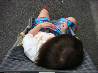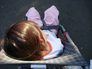 ←バギーに乗せたちび子は、ここでお昼寝です。