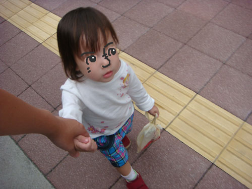ちび子が最近歩きたがりなので、今日はバギーを持たずに幼稚園へ行きました。