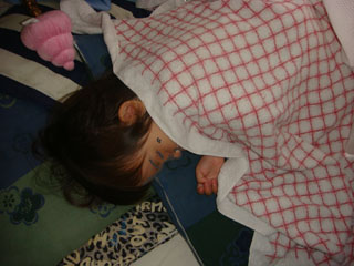 そして、ぴよ子が寒いと言い出したので布団をかけ、ついでにちび子も横にしたら、