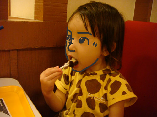 ぴよ子とちび子がアイスクリームを食べているところだそうです。^^