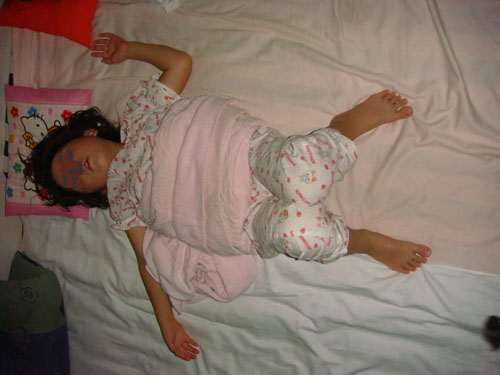 家に帰るまでの間に、ちび子はおんぶされたまま熟睡してしまい、帰宅後もしばらく寝てました。