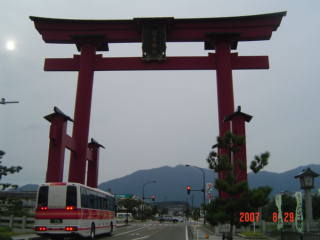 弥彦の大鳥居の下をくぐって帰りました。