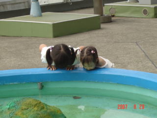 タッチプールを覗き込む2人。
