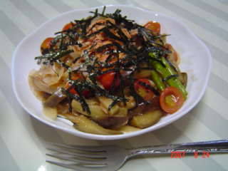 今日の昼食の「夏野菜の冷製パスタ」です。