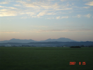 写真は日の出前、遠くに見える山は粟ヶ岳です。