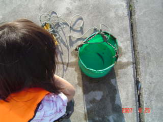 ぴよ子にも「まだ小さいアジだから、『大きくなってね』って逃がしてあげようね。」