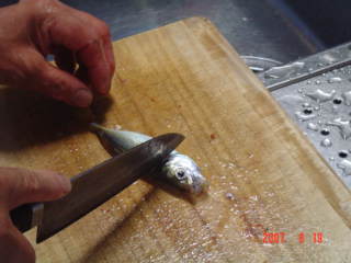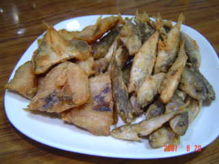 ぴよ子は、開いたものより小さなアジの丸揚げの方がお好みでした。