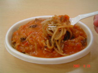 (麺の太さ、ソースの味、付け合せのしょうが、フォークで食べるか箸で食べるか。)