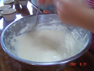 私は一番に夕食を食べ終え、梅シロップを少量混ぜたホイップを泡立て、