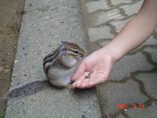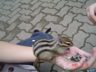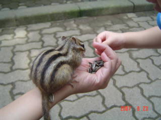 ぴよ子は私の腕にリスが乗っているのを見て、