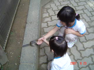 「なにやってるの?」とばかりに手を出してくるちび子を阻止するのも、仕事のうちですw