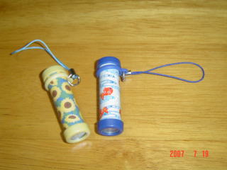 麦茶についてたオマケのミニ万華鏡です。