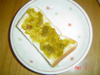 今朝の朝食に、さっそく梅ジャムの試食です。