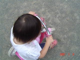 ちび子の為に三輪車を出し、ぴよ子には自転車にまたがってもらって移動です。